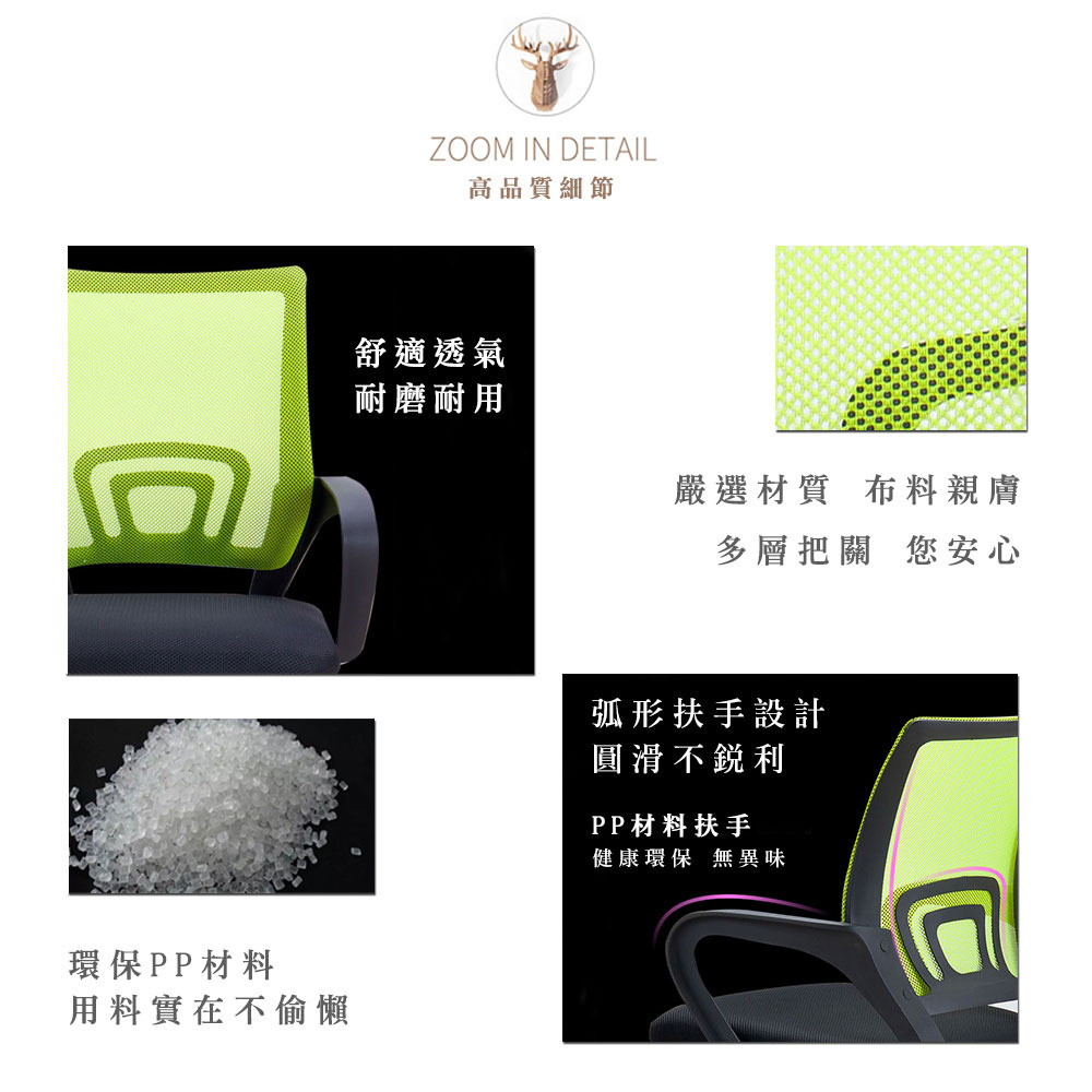 松石綠、暖陽橘等獨家色系採用美學工藝,抗指紋特性保持每日清新質感。椅背網布特別強化側向支撐條,長時間追劇、視訊會議也能 維持舒適坐姿。
