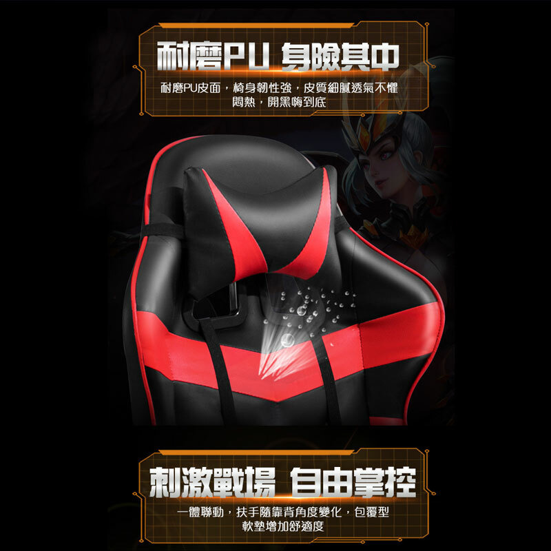 低調外觀搭配賽車線條,完美融入遊戲室、居家辦公室甚至直播間。椅腳電鍍工藝提升整體質感,相較傳統塑膠腳更能承受頻繁移動,